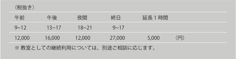 絵画教室や手芸教室など、自然の光が入る明るい部屋で各種教室が開けます。